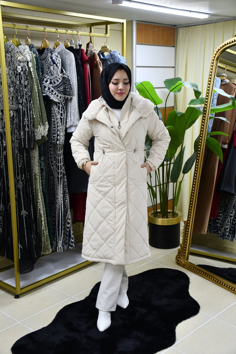 Yumuşacık dokusu, kürklü yakası ve ayarlanabilir bel detayıyla hem şık hem rahat bir görünüm sunar. Kış günlerinde seni sıcacık tutarken zarafetini ön plana çıkarır Beden aralığı:40-42-44-46-48-50 ye kadardır